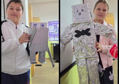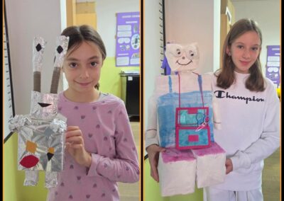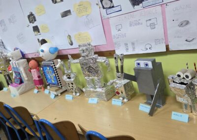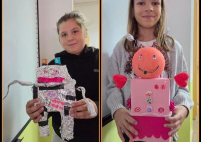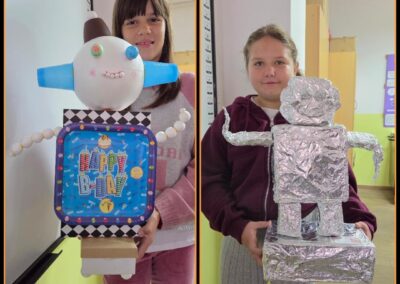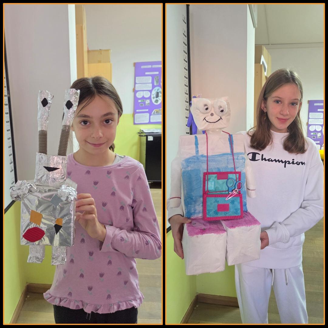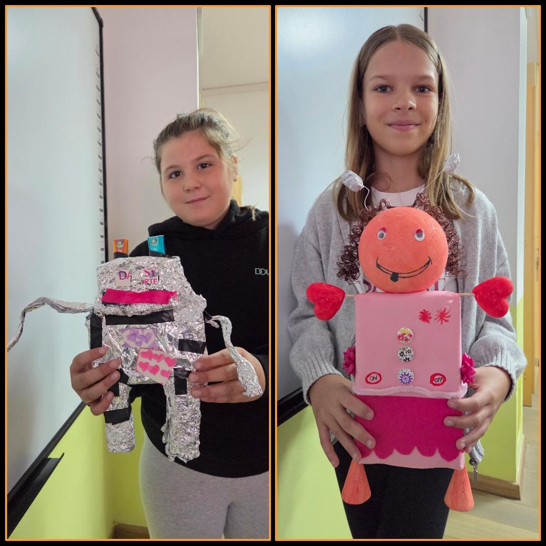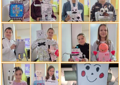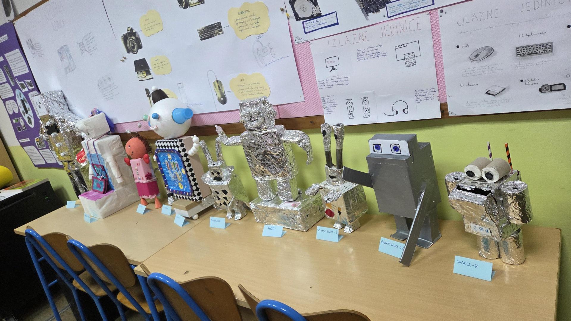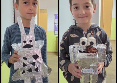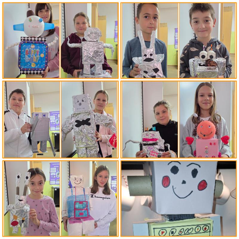 Najkreativniji dio aktivnosti uključivao je osmišljavanje i izradu humanoidnih robota koji pomažu ljudima u svakodnevnim zadacima. Nastali su zanimljivi modeli robota; od onih koji peku kolače, izrađuju frizure, dolaze na rođendanske zabave te do onih koji recikliraju i obavljaju razne svakodnevne aktivnosti. A među zanimljivim i korisnim robotima je i robot Foodie, našeg učenika koji pohađa nastavu u kući. „Izložbu“ njihovih humanoidnih robota znatiželjno i rado pogledaju i ostali učenici kada uđu u informatičku učionicu. Možda baš netko od naših malih izumitelja izumi robota koji će nas zabavljati na rođendanu! Svi su učenici s radošću predstavili svoje robote analizirajući i raspravljajući o ulozi robotike u budućnosti i pozitivnom utjecaju tehnologije na život ljudi.
