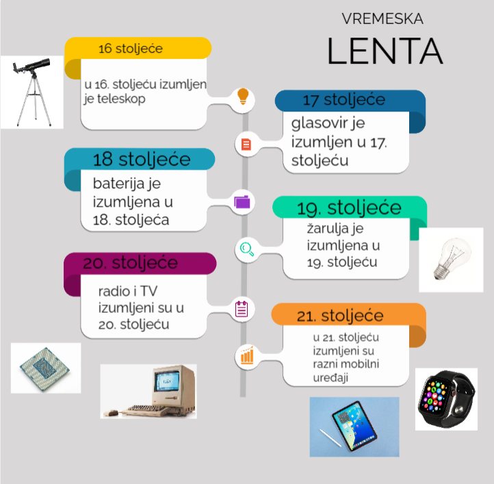 Uvježbavajući vještine rada na računalu učenici su istraživali i stvarali digitalne vremenske lente i plakate o izumiteljima i inovatorima te njihovim postignućima. Učenicima je bilo najzanimljivije istraživati o osobama poput Stevea Jobsa i Elona Muska, koji su obilježili suvremeno digitalno i tehnološko doba.