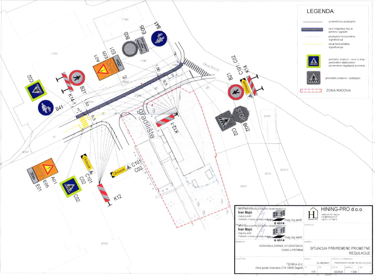 Prema novoj regulaciji, pješačka staza bit će preusmjerena na drugu stranu ceste, dok će dosadašnja pješačka staza biti zatvorena za korištenje jer se nalazi uz zonu ulaza i izlaza vozila s gradilišta.