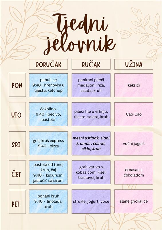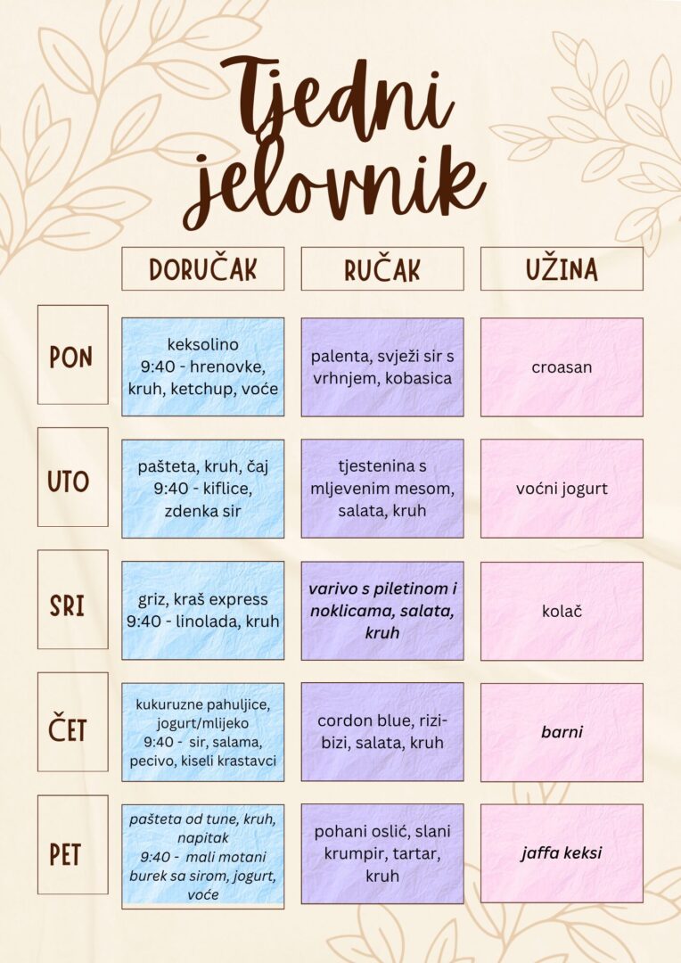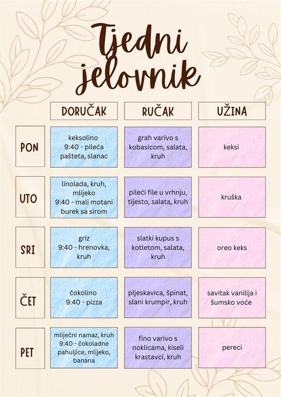 Na ovoj stranici objavljujemo tjedne jelovnike za produženi boravak: