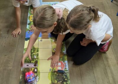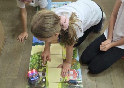 U radu s učenicima koriste se Blue-Bot roboti – edukativni programabilni roboti osmišljeni za razvoj ranih vještina kodiranja, algoritamskog razmišljanja i rješavanja problema. Blue-Bot se može programirati tipkama na samom robotu, putem taktilnog čitača kodova ili kroz aplikaciju, a podržava i blokovsko programiranje, što učenicima omogućuje jasan i vizualan ulazak u svijet programiranja.